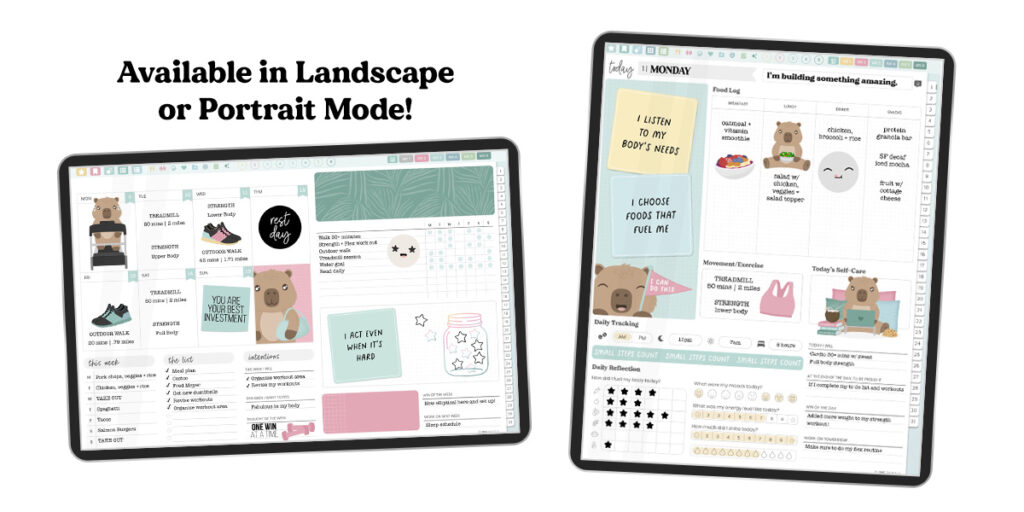 The Glow Up Planner is available now in my Etsy shop. This version features the Cabana color theme – bright, clean, and perfect for a fresh start. It’s available in both landscape and portrait layouts, with Monday and Sunday start options for each.